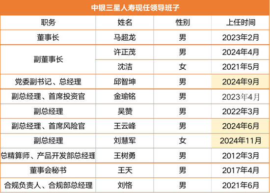 事实上,今年以来中银三星人寿高层变阵频频。今年9月,空悬一年多的总经理终于迎来补位,原中银集团保险有限公司(下称:中银集团保险)的总裁邱智坤获批出任中银三星人寿新总经理,成功填补了自2022年3月以来总经理职位的空缺。在此之前,分管财务、战略规划、数据资产、风险管理的副总经理陈伟已辞任。而于今年6月获批加入中银三星人寿的王云峰,则在8月接下了首席风险官的职务,进一步巩固了公司的高管团队。
