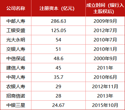 目前,在“银行系”险企行列中,中银三星人寿相较于其余9家而言颇为“年轻”,一方面是其成立时间较晚,另一方面是其规模也相对较小,以24亿元的注册资本位列“老幺”。