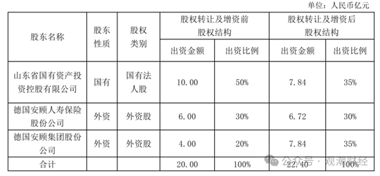 2022年底,德华安顾人寿发布增资扩股公告,山东国投将其持有的3亿元注册资本(占股权转让及增资前注册资本的15%)转让给安顾集团,同时合资公司增加资本金4亿元(其中2.4亿元计入注册资本)。该笔股权转让于次年8月获国家金融监管局山东监管局核准。