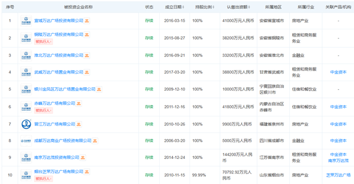 1月17日,据天眼查披露的信息,近期宣城万达广场投资有限公司和铜陵万达广场投资有限公司均出现了股东名单变化,新增控股股东坤华(天津)股权投资合伙企业(有限合伙),原股东大连万达商业管理集团股份有限公司退出。