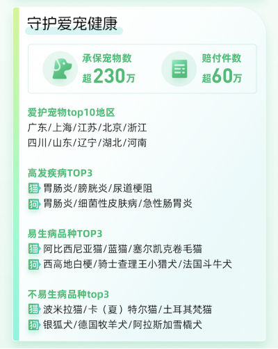 在宠物险领域,众安宠物险理赔已从0到1实现全链路自动化,通过OCR识别、AI、自研算法提升材料识别准确率,理算金额准确率超96%,月均自动结案数万件,为宠物行业数据标准奠定基础。2024年,众安的宠物险共承保宠物超230万只,赔付件数超60万件。