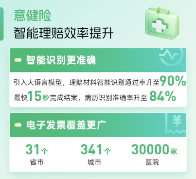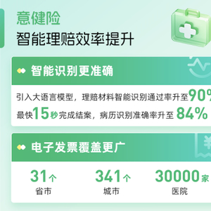 报告披露,在意健险理赔方面,众安保险通过引入大语言模型将理赔材料智能识别通过率提升至90%、病历识别准确率提升至84%,最快15秒完成结案。智能理赔流程中电子发票已覆盖全国31个省市、341个城市、超3万家医院,用户提交材料便捷度显著提升。在人工智能技术的应用下,智能客服体验更加流畅。