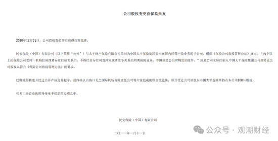 作为中国太平保险集团旗下的控股公司,既有香港民安保险在内地经营业务,也有旗下全资控股公司太平财险在开拓全国性保险市场。基于上述规定,海航系接手中国太平保险集团持有的民安保险股权。