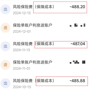 2024年11月1日,熊女士登录泰生活APP查看当月保单收益情况,发现保单3的上月账户价值与上月收益之和小于当月账户价值,两者差额为485.88元。