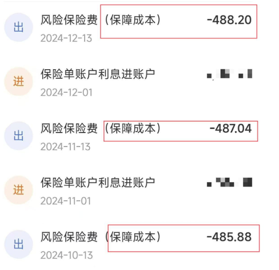 熊女士联系代理人陈某,陈某在电话中表示,她也不知道这项收费,需要向公司了解。此后,熊女士又多次拨打泰康人寿客服电话。在多次沟通后,熊女士才得知,保单3在追加保费后,激活了泰康尊赢终身寿险(万能型)。而这个终身寿险,每个月都有保障成本。
