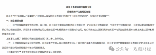 渤海人寿受问题股东股权困扰多年,2017年10月,原保监会向渤海人寿发送监管函,其中提到股权质押解质押管理不规范且公司章程股权相关记载不规范等问题。