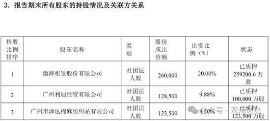 而在这封监管函后,据渤海人寿已发布的偿付能力报告显示,渤海人寿17家股东中,共14家股东有过质押行为。