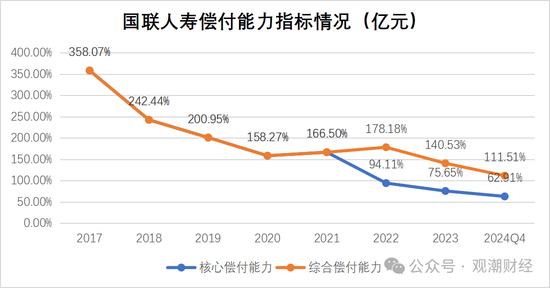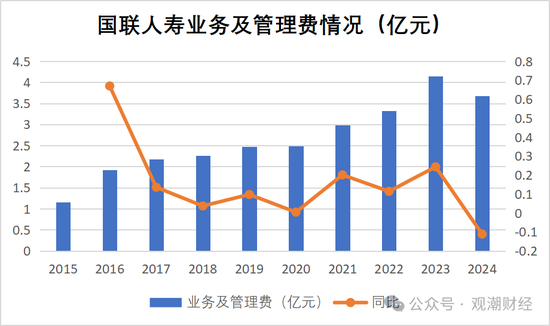数据来看,国联人寿业务及管理费2024年亦有所下降,该指标费用为3.68亿元,同比下降11.1%。