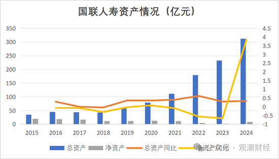 从资产端来看,2024年国联人寿资产规模均有所上升。其中,总资产311.65亿元,同比上升33.67%;净资产为8.51亿元,同比上升383.34%。