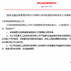 熊樱大家保险董事任职资格获核准 金融一线 2025.05.1317:00 关注 5月13日金融一线消息,国家金融监督管理总局日前发布关于熊樱大家保险集团有限责任公司董事任职资格的批复,核准熊樱大家保险集团有限责任公司董事的任职资格。