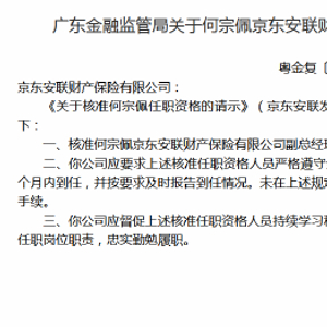 5月21日金融一线消息,广东金融监管局近日发布批复称,核准何宗佩
