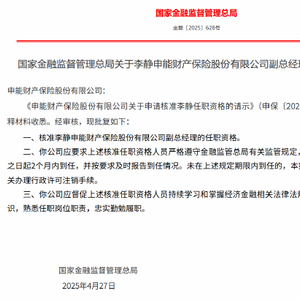 5月21日金融一线消息,国家金融监督管理总局发布批复公告,