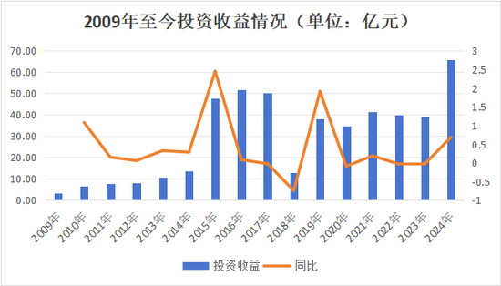 投资端来看,除2018年资产端数据外露之外,其他时间一直较为稳定,2024年投资收益大幅增长,达65.94亿元,较2023年同比大增68.78%,这也是幸福人寿史上投资收益最高的一次。