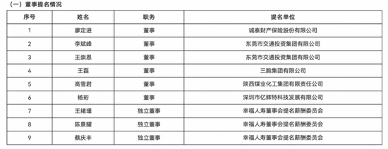 除股权上的优势之外,我们在幸福人寿官网信息中可见,幸福人寿的6名普通董事来自5家股东。第一大股东并非委派董事最多的,反而是第二大股东东莞交投派了2名董事。
