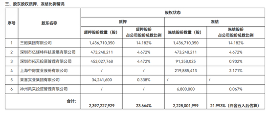 2019年7月深圳市亿辉特科技向华夏人寿质押了4.73亿股股份;