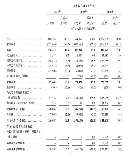 值得注意的是,该司的研发开支也有所下降。2022年至2024年,其研发开支分别为5350.8万元、6107.8万元和5095.5万元,占总收入比例从6.6%降至3.7%,后保持稳定。不仅如此,该司研发人员的平均人数由2023年的145人减少至2024年的133人。