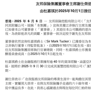 友邦保险重磅人事!40年老将杜嘉祺回归任董事会主席,谢仕荣服务超60年退休
