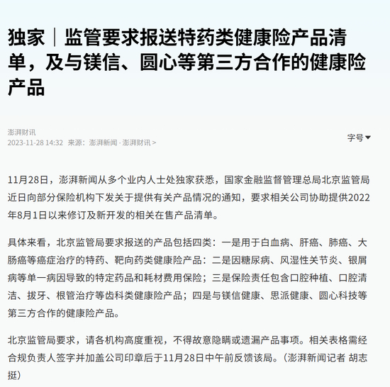 到了2023年11月,金融监管总局北京监管局直接向业内下发补充通知,特别是点名了,镁信健康、思派健康、圆心科技这三家公司。