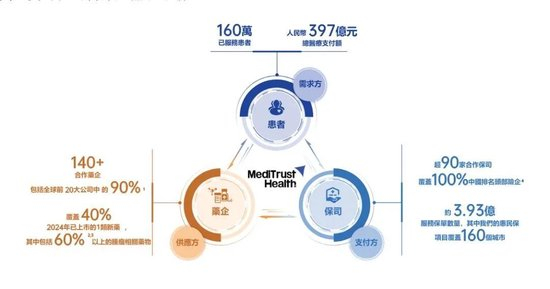 目前在药企端,镁信健康通过“智药解决方案”为药企提供覆盖药品全生命周期的商业化服务,例如商业化策略、多元支付整合、患者管理等。根据招股书,截至2024年末,镁信健康已累计与超过140家药企建立合作关系,其中涵盖全球前20大公司中的90%。