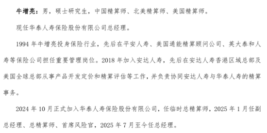 精算大拿牛增亮执管华泰人寿!半年连升两级、年薪瞄准行业天花板