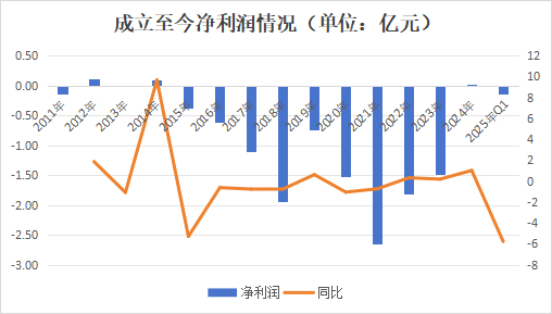 自2022年开始长江财险亏损连续缩窄两年,并在2024年实现略微盈利0.03亿元,较2023年同比上升102.05%。但2025年一季度,长江财险再次净亏损0.14亿元。