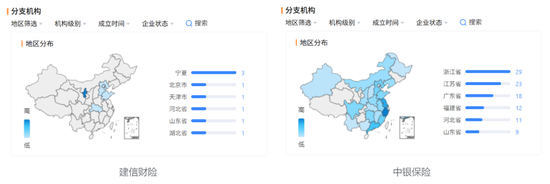 这对“双子星”同样背靠国有大型商业银行,成立时间、资产规模、经营状况却迥然不同——中银保险成立于2005年,今年刚好成立20周年,总资产达146亿;建信财险则要“年轻”许多,成立于2016年,经营至今9年,总资产17亿;建信财险的各级分支机构数量仅有9家(含总公司),而中银保险则拥有多达150家(含总公司)分支机构。
