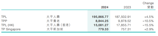2024年报显示,太平人寿、太平人寿(香港)、太平新加坡原保费收入分别同比增长4.5%、-15.5%、2.9%。