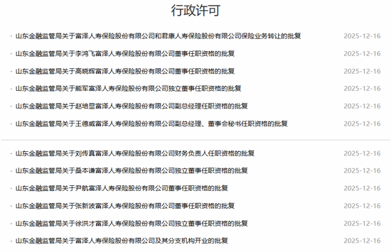 12月16日,国家金融监督管理总局山东监管局(下称:山东金融监管局)一连发布十余则行政批复,全部关于一个“新生”险企——富泽人寿。批复包括准许公司及其分支机构开业,以及三位独董、四位董事,两位副总经理,一位财务负责人任职资格。
