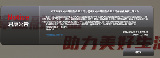 打开君康人寿公司官网,一则保险业务转让公告立时映入眼帘——根据山东金融监管局批复信息,富泽人寿受让君康人寿保险业务。富泽人寿将履行以君康人寿名义签署的保险合同义务,切实保护保险消费者的合法权益。