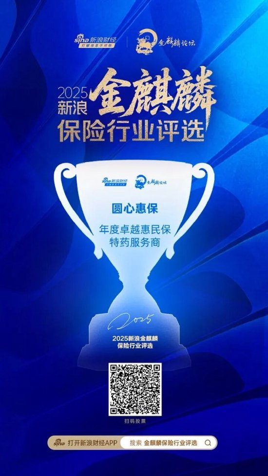 今日,在2025新浪财经金麒麟保险行业评选中,圆心惠保荣获“年度卓越惠民保特药服务商”奖项。这一荣誉的获得,正契合了我国多层次医疗保障体系不断深化、惠民保障持续升级的关键节点。