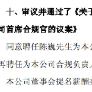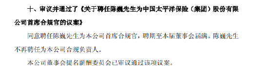 中国太保:聘任陈巍为首席合规官