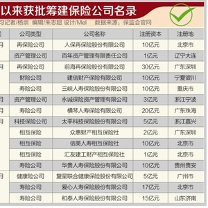 财险公司方面,仅有建信财产保险有限公司批筹。“社会资本青睐财险的程度往往不如寿险,因财险公司难以迅速实现资金的积累和沉淀,车险、房屋险、责任险等赔付率相对较高。”一位财险公司人士如是称。