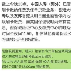 第二,早一点咨询了保险业的相关人士,意外、疾病等旅游消费相关的经常项目保险不受昨天的消息影响。而人寿险和储蓄险今天(29日)还是可以购买的,不过保费(注意,不是保额!)要求在5000美元以下,而且一天一张银联卡只能限额刷5000美元。由于之前外汇管理局对刷卡笔数并无限制,所以刷卡刷到手软式的大额保单换汇仍在香港屡见不鲜。