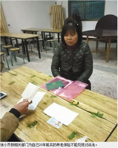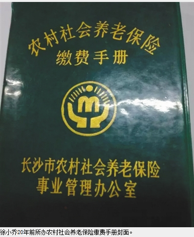 1997年,时年35岁的徐小乔在湖南省浏阳市官渡镇一家工厂中做临时工。当时,徐小乔听说浏阳市农村社会保险工作局有一种专门针对无业人员的养老保险,在一次性缴纳保险金后,20年后每月可领取养老金。
