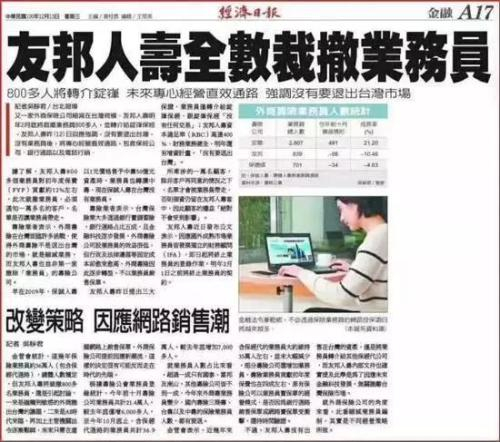 台湾媒体分析称,重要原因之一就是,AI时代来临,未来只需在虚拟网络上销售保单。
