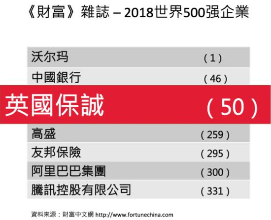 而在《財富》杂志的2017年世界500強企业中,英国保诚集团排行第50。