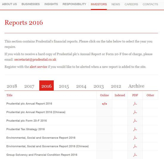 從1848年成立至今的每一年的年報都可以在官方網站上找到:(公司網址:http://www.prudential.co.uk/)