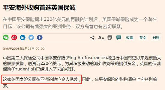 而说“保诚在亚洲一直不顺利”,也是令人啼笑皆非。小散户的评论没有意义。我们看看大名鼎鼎的平安集团对保诚在亚洲的地位是怎么看的。