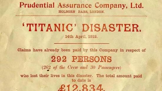 泰坦尼克号悲剧里,遇难者中1/3都是保诚的客户。英国保诚为324個生命支付了£14,239 的赔偿,这笔金额今天看来也许不多,但在当时為这些家庭撑起了一把保护伞,可谓意义重大。