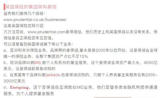 首先说保诚是“基金类财团”,这个如此外行的遣词造句让笔者迷惑不已。想必原文作者应该不太懂金融吧,金融机构的分类里并没有这一个名词。