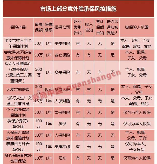 面对可能的保险欺诈,有的保险公司通过设置累计保额上限的方式来进行风控。比如众安的一款尊享意外险,要求被保险人在各家公司购买的意外险总额不得超过200万;上海人寿的一款最高50万保额的意外险,仅限于成年人为本人投保,且限购一份,防止叠加。