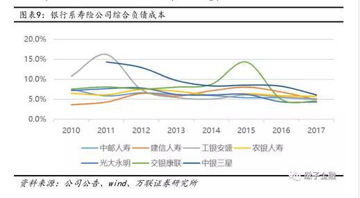 从公司层面看,2017年光大永明和交银康联综合负债成本相对较低,在4.5%左右,中邮、建信、工银安盛在5%左右,农银和中银三星较高6%左右。