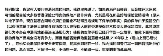 5.跨境购买香港保险,本质上是违规行为,所以出了事就不要觉得有啥人能保证你的合法权益了,就好像你偷渡到其他美国被抢劫了,美国不会管你的合法权益,中国这个亲妈也没办法帮你。