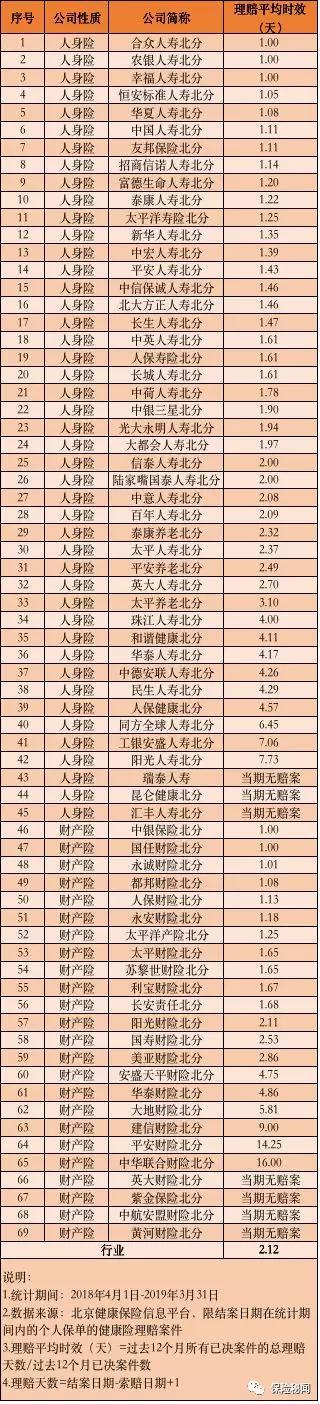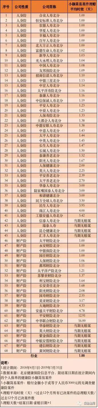 来自北京银保监局的一组“北京地区商业健康保险服务评价指标数据”(统计期间为2018年3月1日-2019年3月31日)显示,