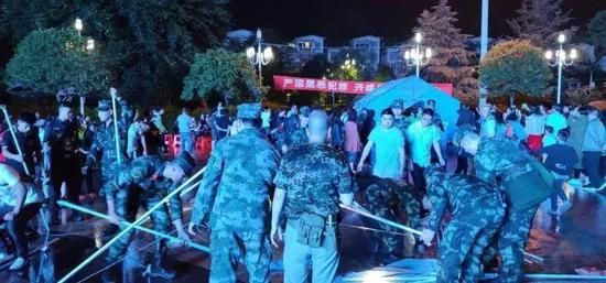 据新华社记者报道,在震中双河镇,长宁县公安局350余警力经过一个通宵的奋战,仍在继续坚守:在双河镇双中外操场、笔架广场、葡萄村广场等三个灾民安置点,已布警80余人,全力维护安置了7000受灾群众的广场内治安秩序;对房屋垮塌最严重的老城区,县局设置7个点位,布设卡警力30余人,对通往老城区东南西北街街口及其他通道进行全面封闭,杜绝救援力量之外人员进入;同时安排30余巡逻警力,分组对老街垮塌严重区域进行搜寻,劝离危房 内群众,防止造成次生灾害。 在派出所接处警组,设置警力10人,负责各类接处警工作,目前,灾区秩序井然,尚未接到盗抢报警。