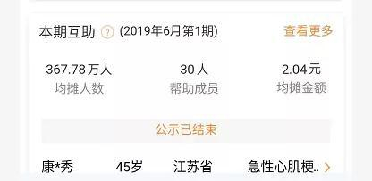 细看,发现不同,我支付的,是“相互保分摊-6月第1期”,分摊人数是367.78万人,帮助成员是30人;而我朋友支付的,是“相互宝分摊-6月第1期”,分摊人数是6718.67万人,帮助成员是100人。