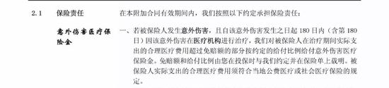 《每日经济新闻》记者查阅条款发现,该意外医疗险条款规定,“我们对被保险人在治疗期间实际支出的合理医疗费用超过免赔额的部分按约定的给付比例给付意外伤害医疗保险金。”对于合理医疗费用的认定,保险公司进一步称“须符合当地公费医疗或社会医疗保险的规定。”