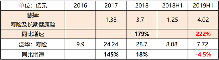 慧择的寿险及健康险业务仍维持222%的高速发展,泛华却同比下滑4.5%显得无以为继。