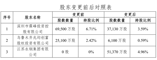 也就是说,股权转让成行,霖峰投资持股为37139万股,由第二大股东下降至第九位,永钢集团则成为第4大股东。