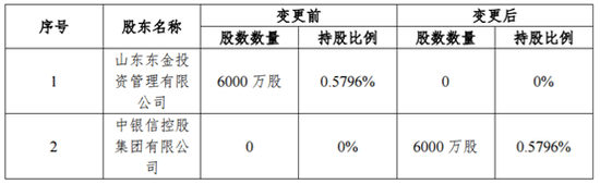 3月4日,阳光保险集团在中国保险行业协会官网发布公告称,山东东金投资管理有限公司将其持有 6000万股股份(占比 0.5796%)转让至中银信控股集团有限公司。股权变更后,山东东金投资将完全退出阳光保险集团。